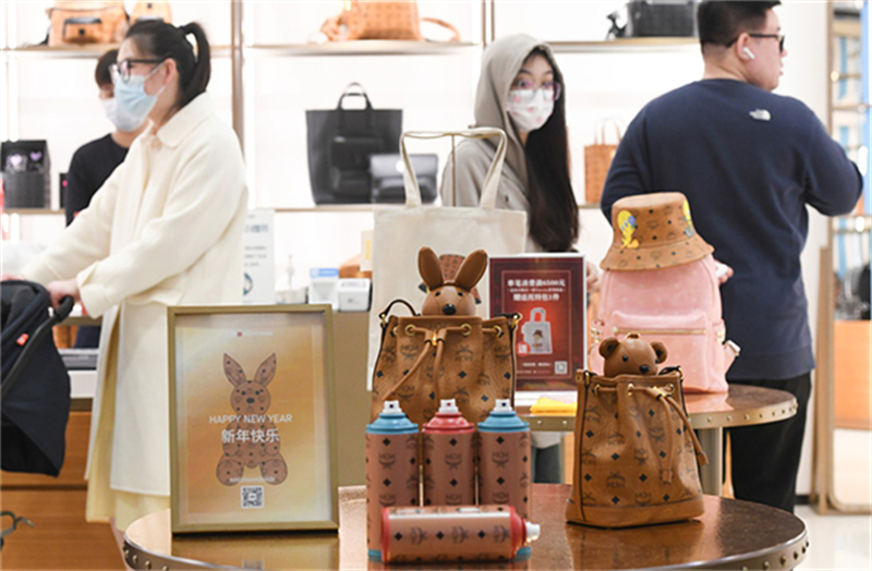 1月25日,游客在中免集團海口日月廣場免稅店選購免稅商品。新華社記者 楊冠宇 攝