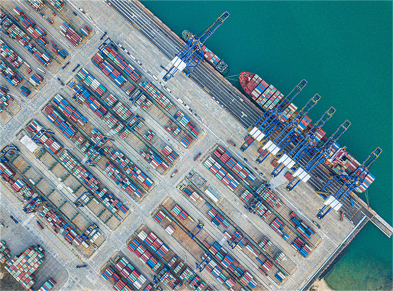 距離博鰲亞洲論壇會址約200公里,海南洋浦國際集裝箱碼頭,橋吊繁忙作業,拖車川流不息。今年前2個月,碼頭集裝箱吞吐量累計完成26.96萬標箱,同比增長8%,迎來“開門紅”。