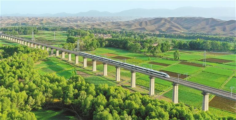 列車在蘭張高鐵蘭武段行駛。蘭州至張掖高鐵中川機場至武威東段于2024年6月開通運營。資料圖