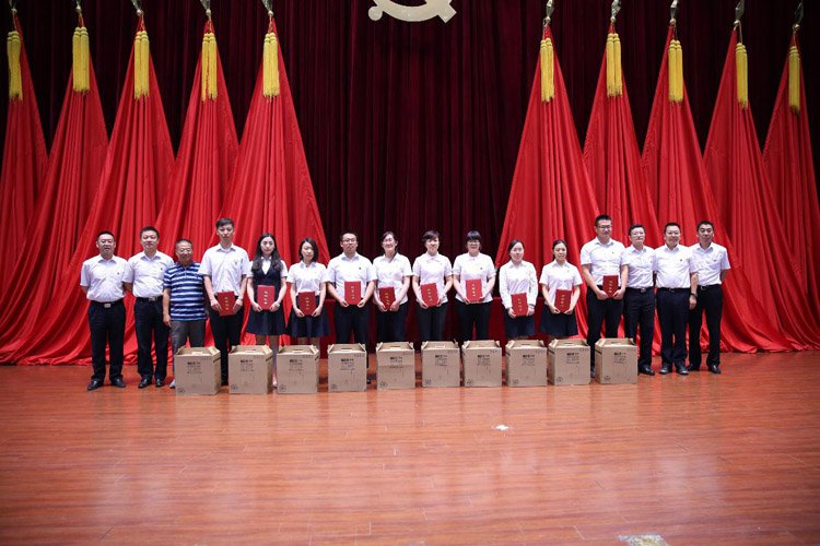 在公司黨委副書記婁德全同志宣讀《關于表彰2016-2017年度先進黨支部、優秀共產黨員的決定》后,公司黨委書記、董事長李曉安、黨委副書記婁德全等公司領導與老書記王志發、劉利安、劉西蘭等離退休老干部,分別向獲得先進黨支部的天水分公司黨支部、新疆分公司黨支部、華龍期貨公司黨支部以及41名優秀共產黨員進行頒獎。
