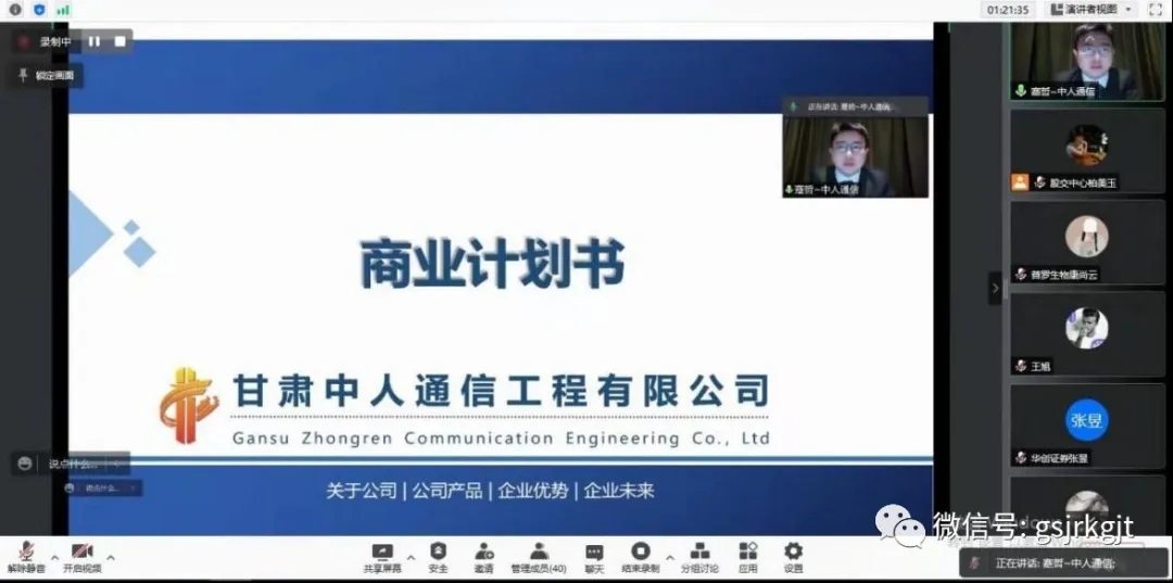 近日,甘肅股權交易中心首次采取云路演的方式舉辦“微路演(專精特新專場)”,對3家“專精特新”企業進行項目融資推介,省內銀行、證券公司、投資機構等相關代表,共計40余人參加本次云路演項目融資推介會。